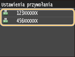 Odbiorcę można wybrać spośród trzech ostatnio używanych pozycji. W przypadku wyboru jednego z ostatnio używanych odbiorców urządzenie wybierze również te same ustawienia, takie jak stopień zabarwienia, zastosowane podczas poprzedniego wysyłania faksu do tego odbiorcy.