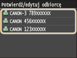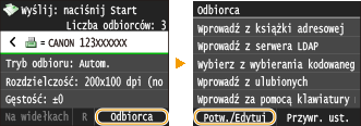 Szybkie i proste usuwanie odbiorców bez wyświetlania listy odbiorcówPrzed dotknięciem przycisku <Odbiorca> w kroku 1 można przełączać wybranych odbiorców za pomocą przycisków