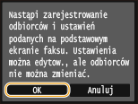 Odbiorców nie można zmieniać po zapisaniu ustawień. Aby zmienić odbiorcę, należy usunąć ustawienia i ponownie je zapisać.