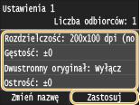 Sprawdź szczegółowe informacje dotyczące ustawień do zapisania i dotknij przycisku <Zastosuj>.
