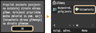W przypadku wybrania opcji <Tak> zostanie wyświetlony komunikat. Zapoznaj się z jego treścią, a następnie dotknij przycisku <OK>. Zestaw zapisanych ustawień zostanie dodany do ekranu Główny jako przycisk skrótu.