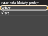 Aby wydrukować odebrane dokumenty zapisane w pamięci, ustaw opcję <Ustawienia blokady pamięci> na <Wyłącz>. Wszystkie dokumenty przechowywane w pamięci zostaną wydrukowane.