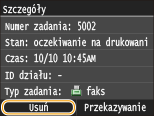 Dostępna jest funkcja wyświetlania informacji dotyczących dokumentów przechowywanych w pamięci, w tym numerów faksu nadawców i liczby przesłanych stron, istnieje również możliwość usuwania niepotrzebnych dokumentów.