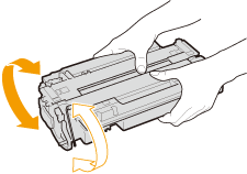 Wstrząśnij kasetę z tonerem pięć lub sześć razy, tak jak pokazano poniżej, aby równomiernie rozprowadzić toner wewnątrz kasety.