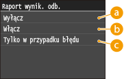 Wybierz, aby Raport wyników RX był drukowany, tylko jeśli wystąpi błąd odbierania.
