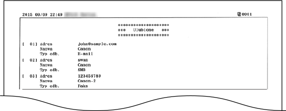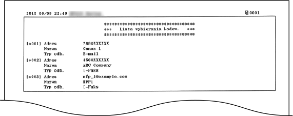 Listę odbiorców zarejestrowanych w książce adresowej jako <Wybieranie kodowane>, <Ulubione> oraz <Wyb. grupowe> można sprawdzić, drukując listę książki adresowej.