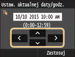Przed określeniem aktualnej daty i godziny należy skonfigurować ustawienie <Strefa czasowa>. Ustawienia bieżącej daty i godziny są automatycznie dostosowywane do zmian wprowadzonych w ustawieniu <Strefa czasowa>.