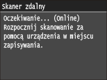 Jeśli przez określony czas po wyświetleniu poniższego ekranu (urządzenie znajduje się w trybie online w celu wykonania skanowania) nie zostanie wykonane skanowanie, urządzenie automatycznie przełącza się w tryb offline. Istnieje możliwość określenia czasu, po którym urządzenie przechodzi w tryb offline. Urządzenie można również skonfigurować tak, aby pozostawało w trybie online.