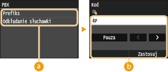 Wybierz rodzaj używanego PBX. Jeśli wybierzesz <Prefiks>, zarejestruj kod przedrostka na następnym ekranie.