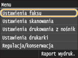 Ustawienie umożliwiające określenie, czy otrzymane faksy powinny być przechowywane czy natychmiast drukowane. Zapisane w pamięci urządzenia dokumenty można wydrukować w dowolnym momencie, zmieniając wartość ustawienia na <Wyłącz>.