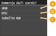 W tej części opisano ustawienia konwersji kolorów na dane skali szarości.
