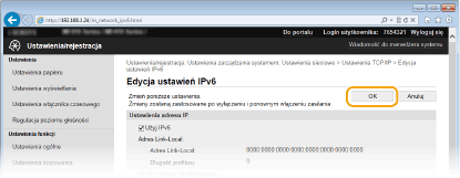 Sprawdzanie poprawności ustawieńSprawdź, czy można wyświetlić ekran Zdalnego interfejsu użytkownika w komputerze z wykorzystaniem adresu IPv6 urządzenia. Uruchamianie Zdalnego interfejsu użytkownika