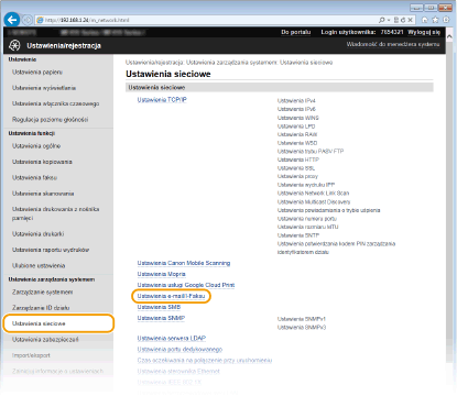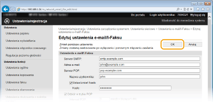 Konfiguracja ustawień komunikacji poczty e-mail/I-faksów