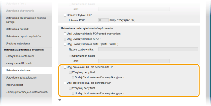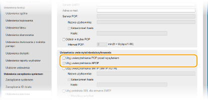 Aby użyć serwera POP3 do uwierzytelniania przed wysłaniem wiadomości e-mail lub I-faksu, zaznacz to pole wyboru.