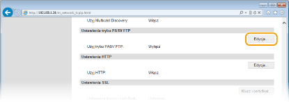 Kliknij element [Edycja] znajdujący się w sekcji [Ustawienia trybu PASV FTP].