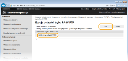 Zaznacz pole [Użyj trybu PASV FTP] i kliknij przycisk [OK].