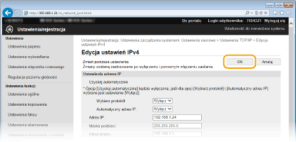 Kliknij element [Edycja] znajdujący się w sekcji [Ustawienia IPv4].