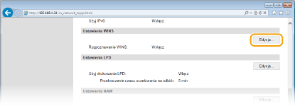 Kliknij element [Edycja] znajdujący się w sekcji [Ustawienia WINS].