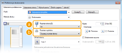 Po wybraniu dla opcji <Priorytet ustawień sterownika podczas drukowania> ustawienia <Włącz> podczas drukowania papier będzie pobierany ze źródła zdefiniowanego w sterowniku drukarki, niezależnie od ustawień papieru urządzenia. Priorytet ustawień sterownika podczas drukowania