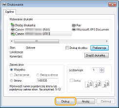 Dotknij lub kliknij przycisk [Urządzenia] [Drukuj] sterownik drukarki urządzenia [Drukuj].Przy drukowaniu z wykorzystaniem tej metody dostępna jest tylko ograniczona liczba ustawień drukowania.