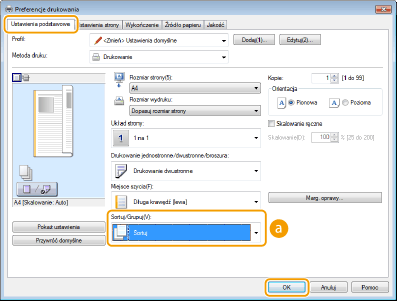 Określanie metody sortowania wydruków przy drukowaniu dokumentów wielostronicowych.