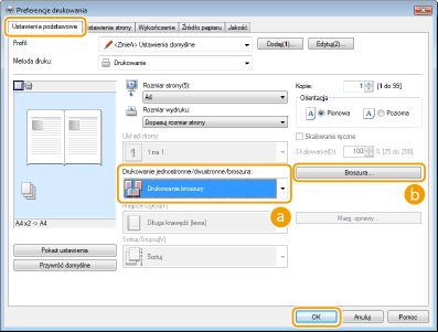 Wybierz opcję [Drukowanie broszury] w obszarze [Drukowanie jednostronne/dwustronne/broszura]