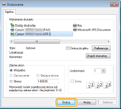 Sposób otwierania okna dialogowego drukowania różni się w zależności od aplikacji. Więcej informacji znajduje się w podręczniku użytkownika stosowanej aplikacji.