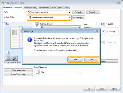 Wybierz [Zabezpieczone drukowanie] w sekcji [Metoda druku].