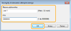 Wprowadź wartości [Nazwa użytkownika] oraz [PIN], a następnie kliknij opcję [OK].