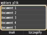 Jeśli w pamięci urządzenia przechowywane są dokumenty chronione utworzone przez kilku użytkowników, przed wyświetleniem ekranu <Wybierz plik> zostanie wyświetlony ekran <Wybierz użytkownika>. Wybierz swoją nazwę użytkownika.
