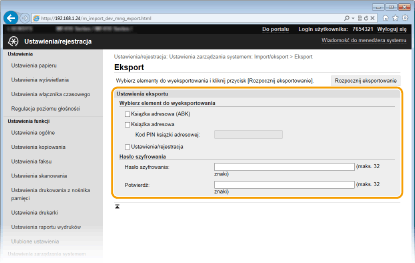 W przypadku zaznaczenia pola [Książka adresowa (ABK)] eksportowanie ustawień urządzenia jednocześnie z danymi książki adresowej nie jest możliwe.