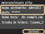 Zeskanowane dokumenty zostaną zapisane w folderze udostępnionym lub na serwerze FTP.