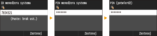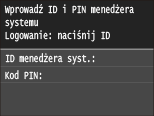 ![]() Domyślnym identyfikatorem menedżera systemu i kodem PIN są „7654321”. Ze względów bezpieczeństwa zaleca się zmianę tego ustawienia.