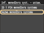 Wprowadź nazwę składającą się maksymalnie z 32 znaków w polu nazwy menedżera systemu i dotknij przycisku <Zastosuj>.