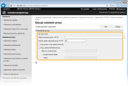Zaznacz pole wyboru [Użyj proxy] i podaj wymagane ustawienia.