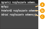 Wybierz opcję <Potwierdź rozgłaszanie sekwencyjne> albo <Odrzuć rozgłaszanie sekwencyjne>.