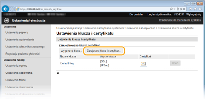 [Ustawienia klucza i certyfikatu] lub [Ustawienia certyfikatu CA].