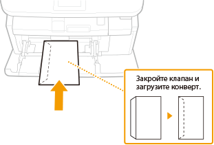 Загружайте конверты таким образом, чтобы отворот был направлен в левую сторону, как показано на иллюстрации.