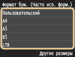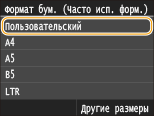 Если приведенный выше экран не отображается при загрузке бумагиЕсли вы всегда загружаете в универсальный лоток бумагу одинакового размера, можно пропустить операции по определению бумаги, выполнив регистрацию размера и типа бумаги в качестве параметра по умолчанию. Однако если зарегистрирован параметр по умолчанию, приведенный выше экран не отображается. Чтобы отобразить этот экран, выберите <Указать при загрузке бумаги> (Регистрация параметров бумаги по умолчанию для универсального лотка).