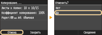 Коснитесь элемента <Отмена> на экране, отображаемом в процессе копирования