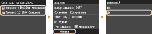 на панели управления. Также можно отменить копирование после проверки состояния копирования.