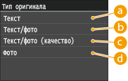 Качество копии изображения можно выбрать в зависимости от типа документа, например, документ, содержащий только текст или таблицы и графики, а также фотографии из журналов.