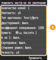 Параметры по умолчанию — это параметры, которые отображаются при включении аппарата или нажатии