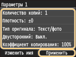 Измените значения настроек, которые нужно зарегистрировать и коснитесь <Применить>.