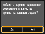 При выборе <Да> появляется сообщение. Прочитайте сообщение, а затем коснитесь <OK>. Установленная комбинация настроек будет добавлена на экран Главный как кнопка быстрого вызова.