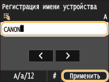 Введите имя аппарата (например, имя пользователя или название компании) с помощью цифровых клавиш и нажмите <Применить>.