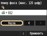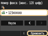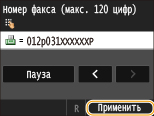 Коснитесь элемента <Пауза> для вставки паузы в конец номера факса.