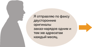 Укажите комбинацию 2-стороннего сканирования с несколькими адресатами и зарегистрируйте ее в разделе <Часто используемые параметры>. После этого можно при необходимости использовать комбинацию этих настроек. Добавление часто используемых настроек факса