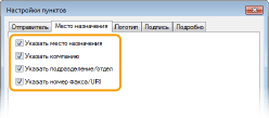 Вкладка [Место назначения]