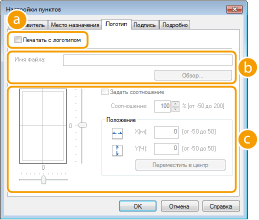 Укажите все значения. На следующем экране приведен пример, когда выбрана вкладка [Логотип].